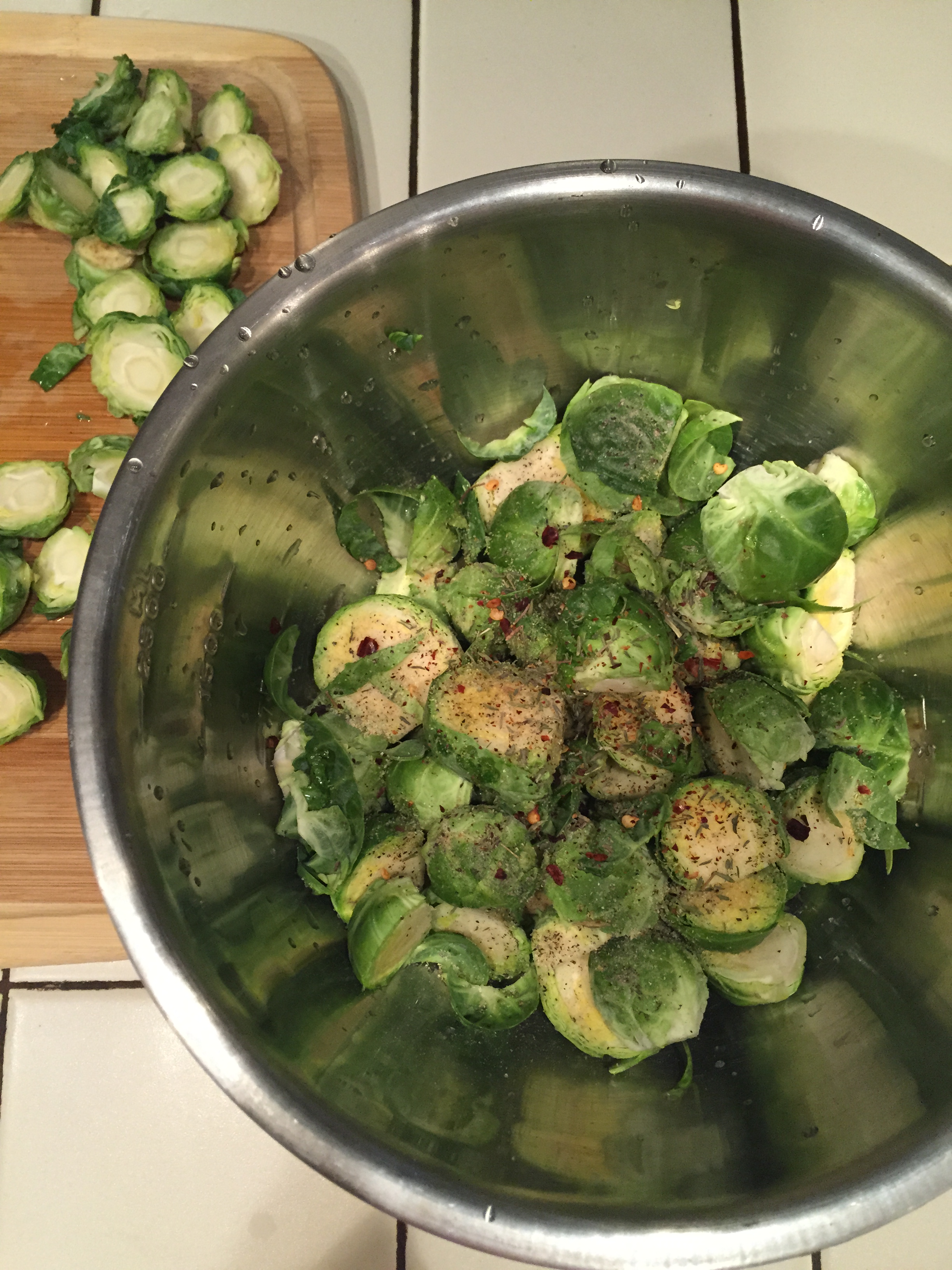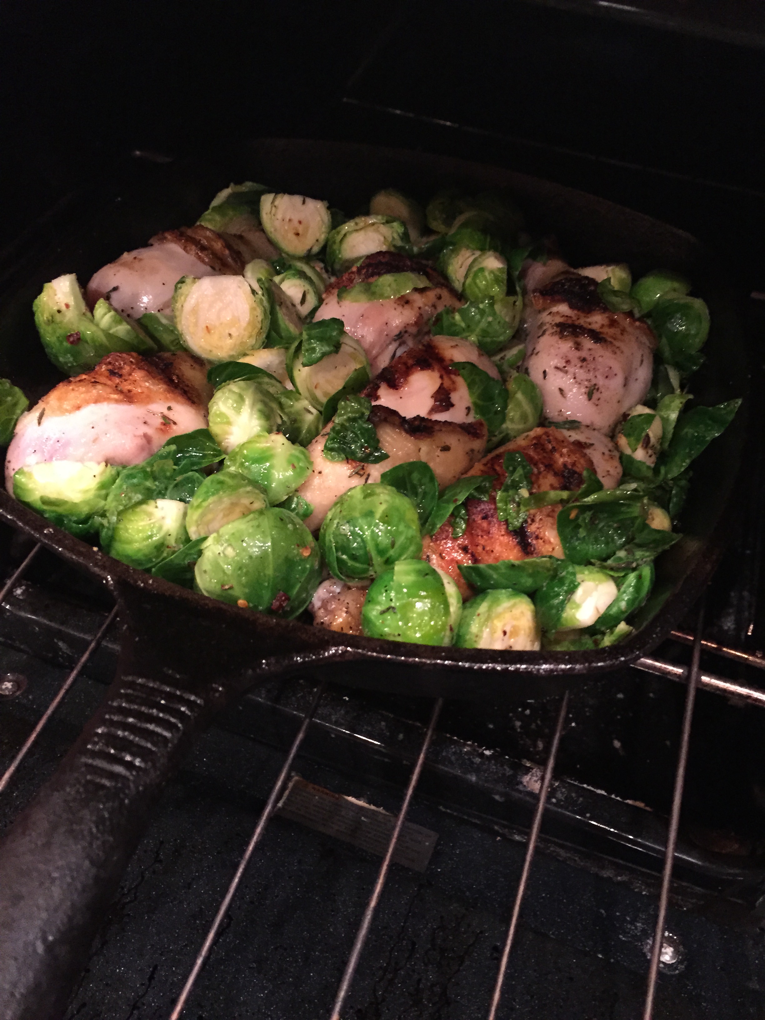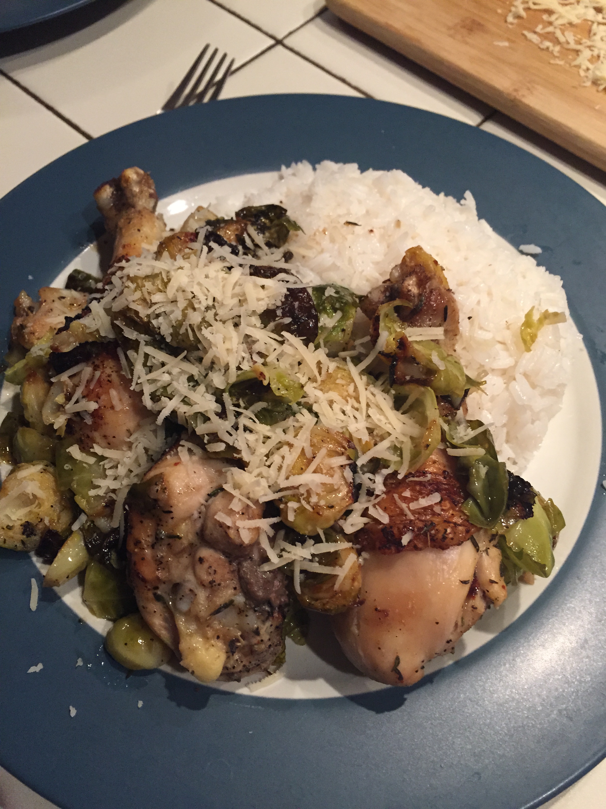 Here is the link to the recipe: Crispy Chicken Legs and Brussels Sprouts