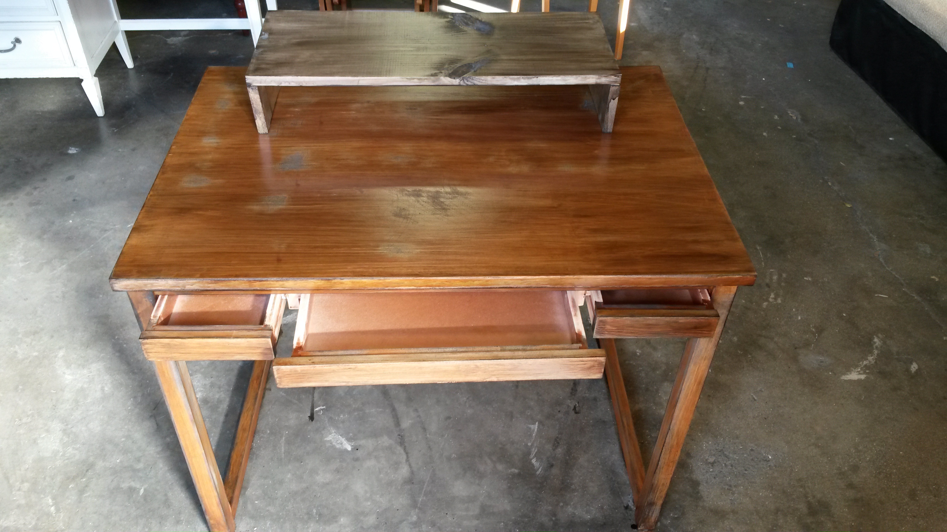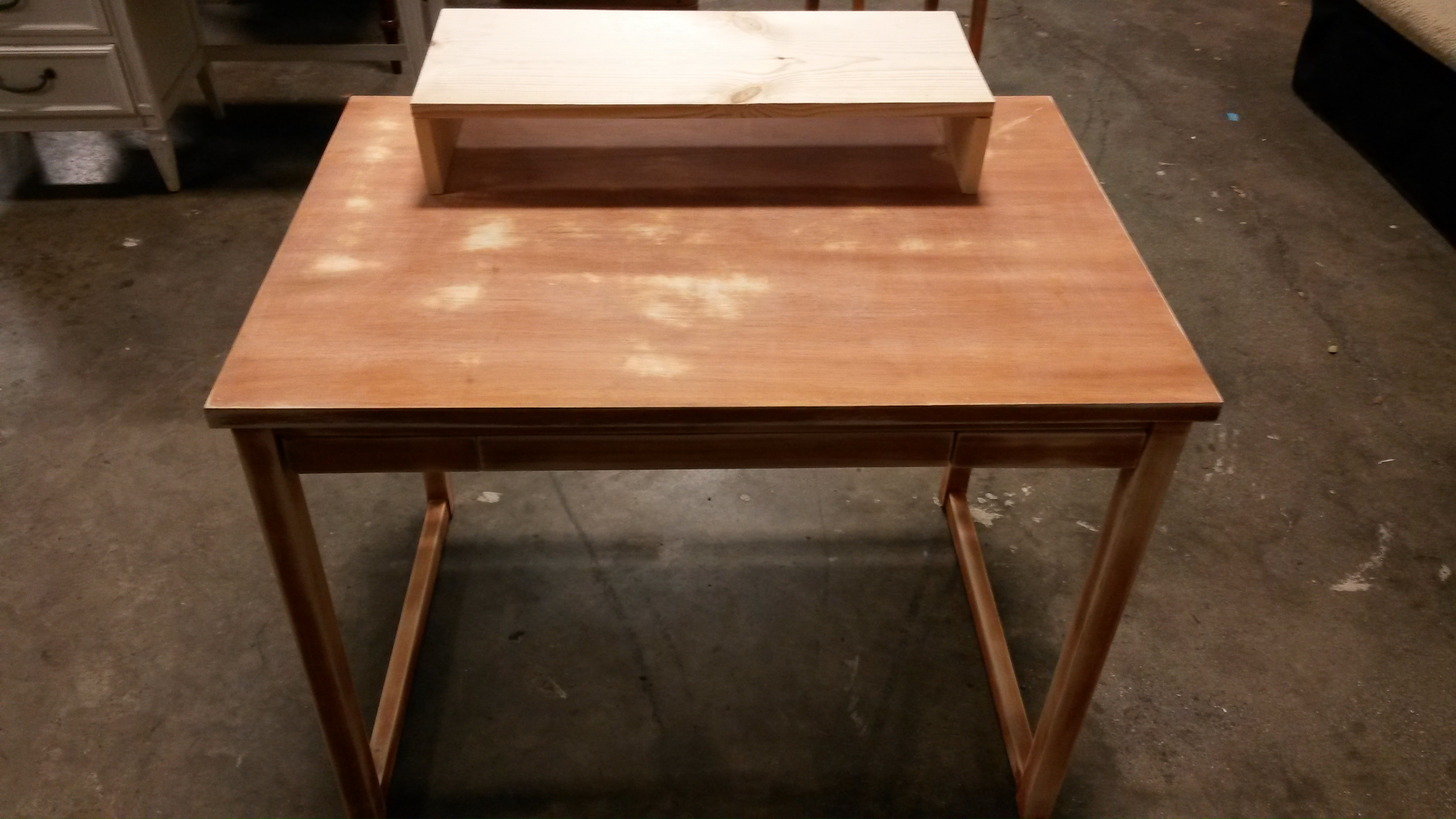The polyurethane did exactly as I had feared and kept the new stain from fully settling on the desk. The result was a goopy mess of half-dried stain marring the hours of sweat and effort I had put into this desk. I know it seems inconsequential, but I was pretty devastated. Heed my warnings. Learn from my mistakes. Also, don’t take the “paint-expert’s” advice as gospel.