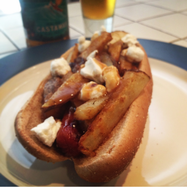 The work of art you see above is our best attempt at the poutine dog, a culinary innovation unveiled by the Detroit Tigers at Comerica Park for the 2014 baseball season. It tastes as glorious as it looks, and I’ve taken it upon myself to type out a recipe for it because everyone deserves to have a little poutine dog in their life.